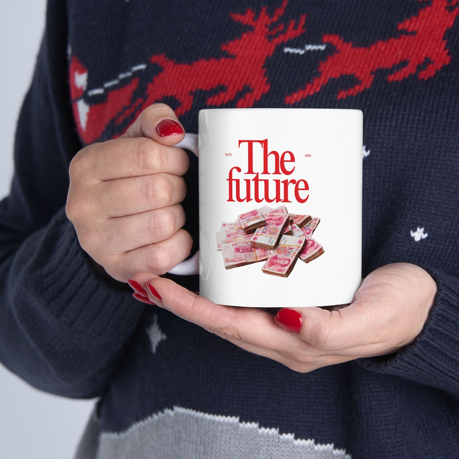 The future mug features a design of Chinese yuan money, giving it a sleek and modern vibe. Perfect for coffee or tea lovers looking for a unique and eye-catching mug to add to their collection. Ideal for those interested in finances, economics, or Chinese culture. Great for gifting on birthdays, holidays, or as a graduation present.